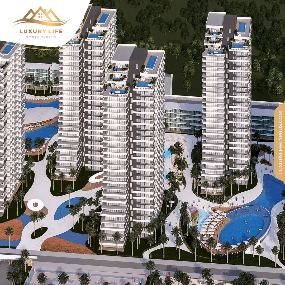 The Grand Sapphire Blue Residential Project offers a remarkable lifestyle opportunity in the beautiful coastal region of İskele – Long Beach. Designed with a seven-star concept, the Grand Sapphire Blue Residential Project features a large-scale residential complex that combines luxury architecture with modern living standards. With five 29-floor towers and ten 5-floor blocks, the development presents a wide selection of studio, one-bedroom, two-bedroom and three-bedroom apartments to meet different lifestyle needs and expectations.